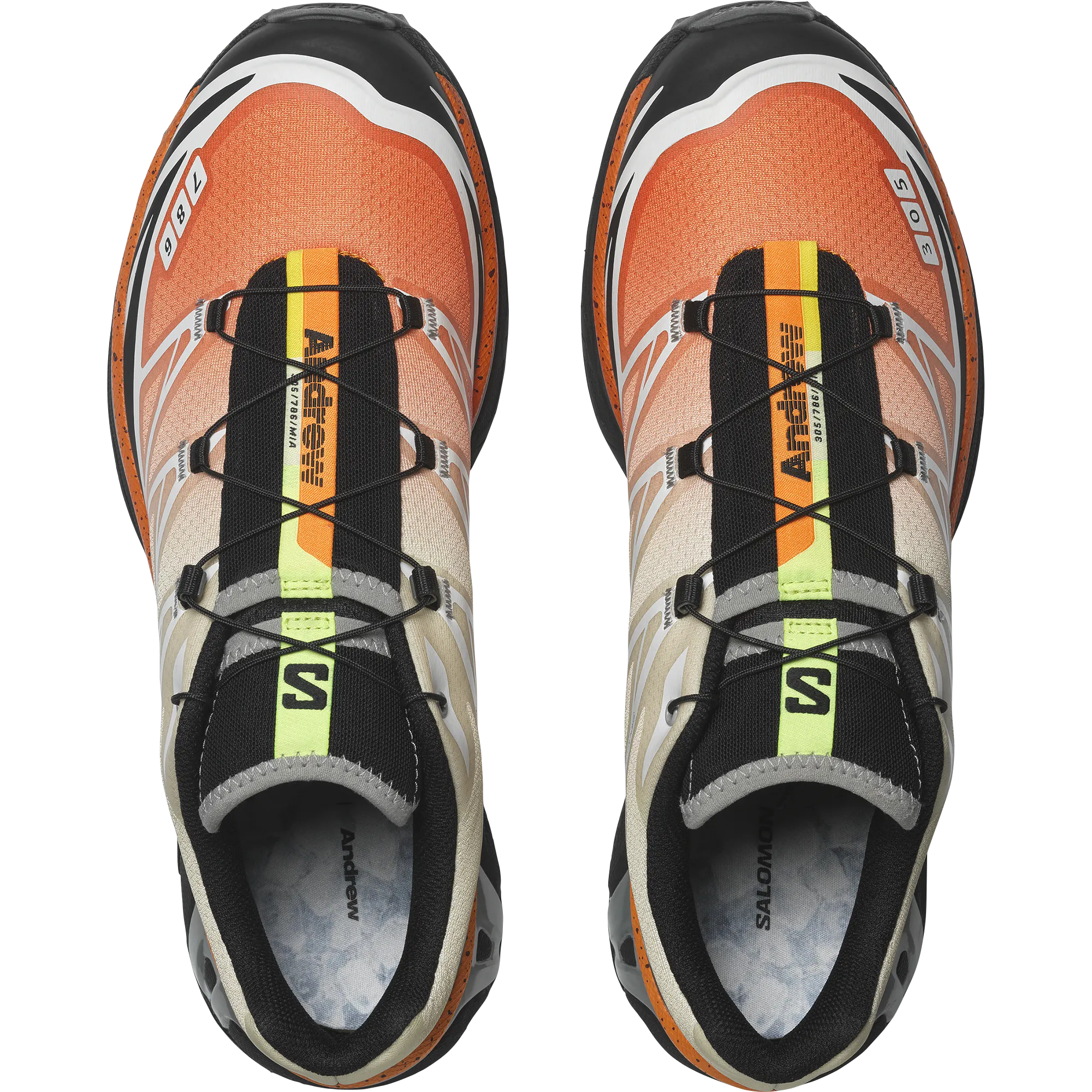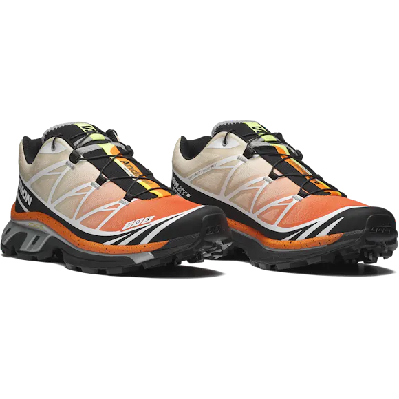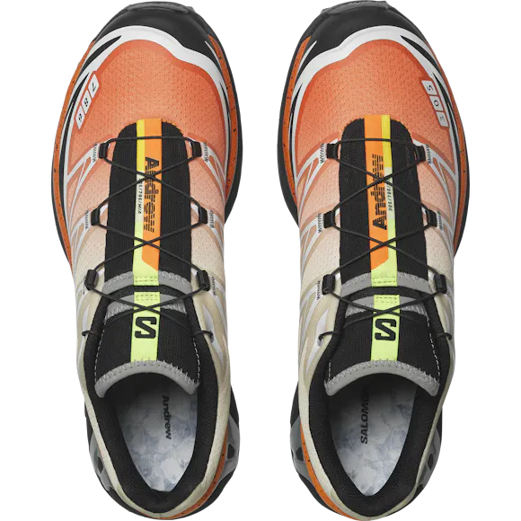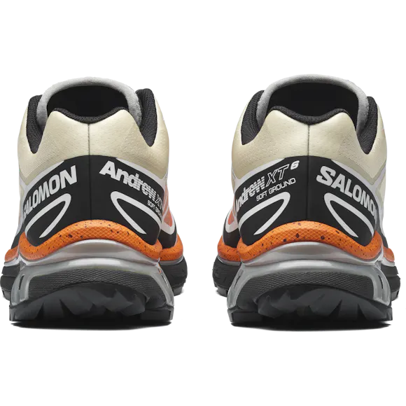 Introducing a shoe that steps outside the ordinary the Salomon x Andrew XT-6. The XT-6 Andrew is a love letter to Miami, expressed through the iconic staple of the Florida Stone Crab. Inspired by the sustainable and striking shellfish, this XT-6 boasts gradient coral colors and dark specks, glossy silvers to represent its classic serving trays, bright greens and yellows for citrus wedges and icy details on the sockliner.