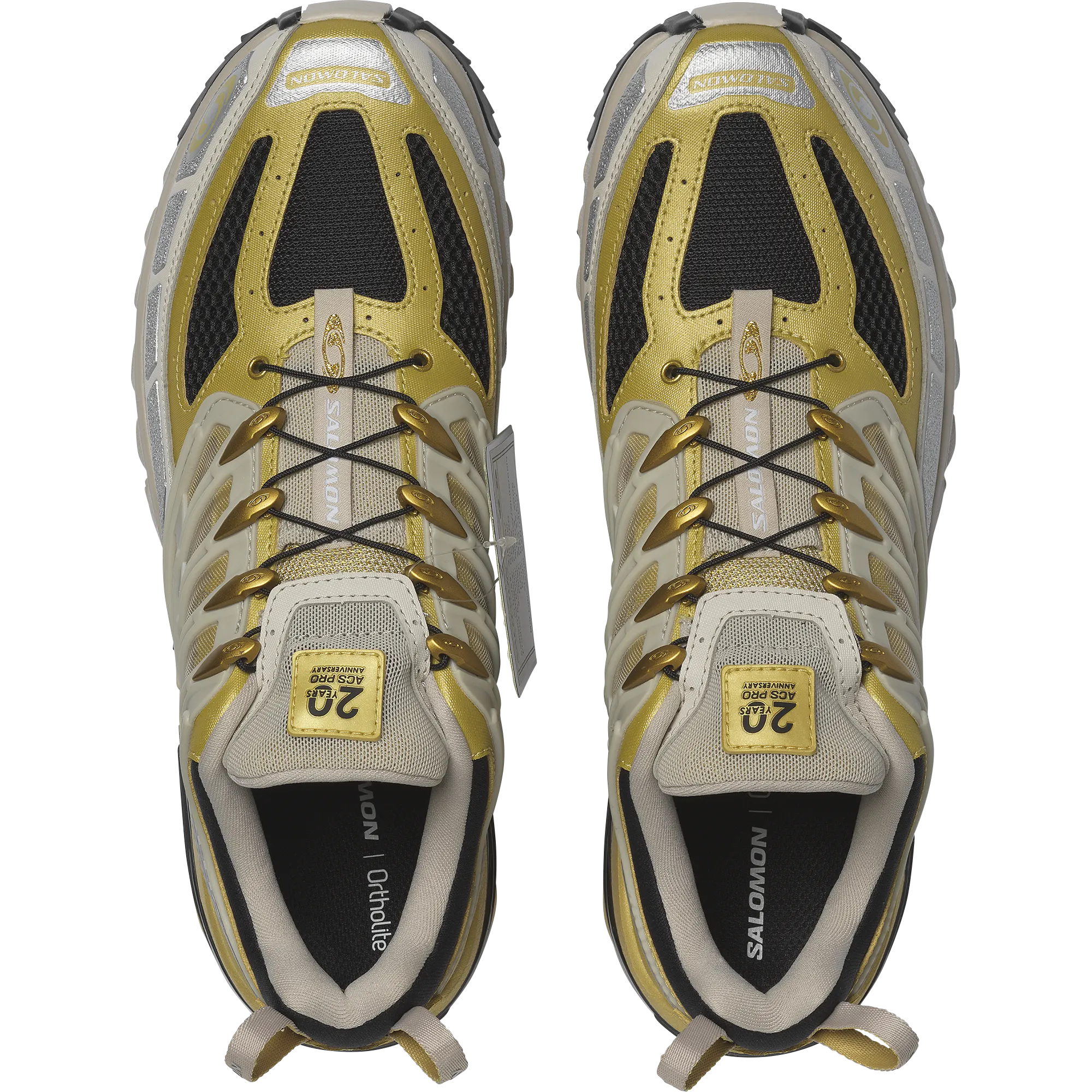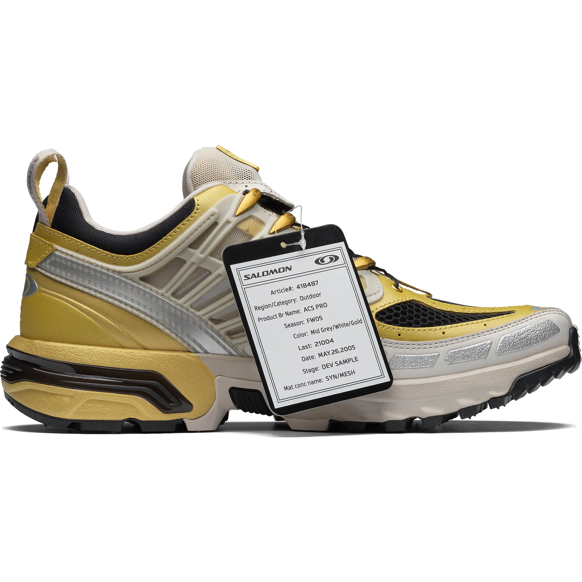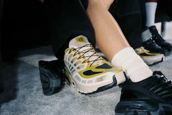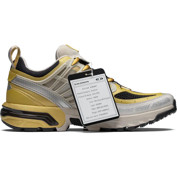 For its 20th anniversary Salomon is releasing the limited-edition Golden Archive ACS Pro. Based on a never-before-released colorway, this model boasts a transparent chassis, carbon-textured cage and special logo. As a nod to the one-off nature of this release, each model is outfitted with a "sample" tag and commemorative gold and black shoe bag.